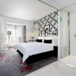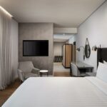 All rooms feature state-of-the-art technology and modern design. They feature air-conditioning, a luxurious bathroom, a satellite TV, a fully-stocked mini-bar and tea/coffee making facilities.
