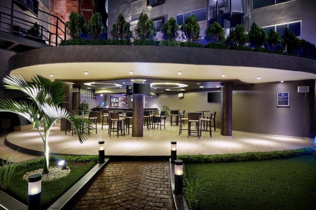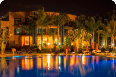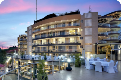 Located on top of Naguru Hill, the hotel offers world class accommodation and conferencing facilities, an on site fine dining restaurant with a well stocked bar and 4 rooftop bars that offer panoramic views of Kampala. The hotel has a swimming pool area with its own dedicated bar.