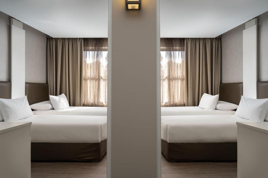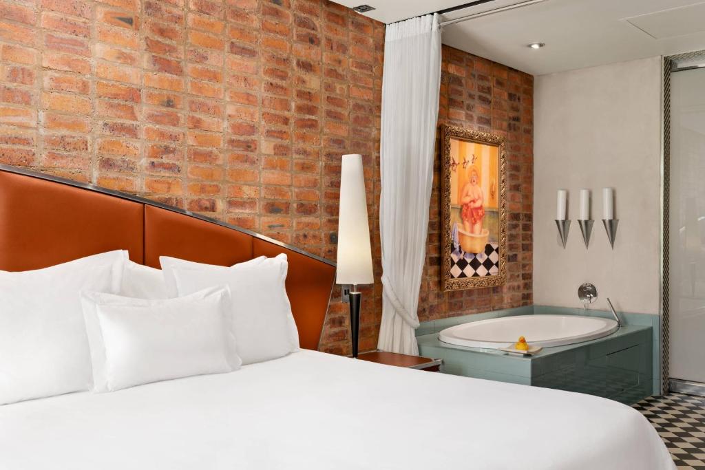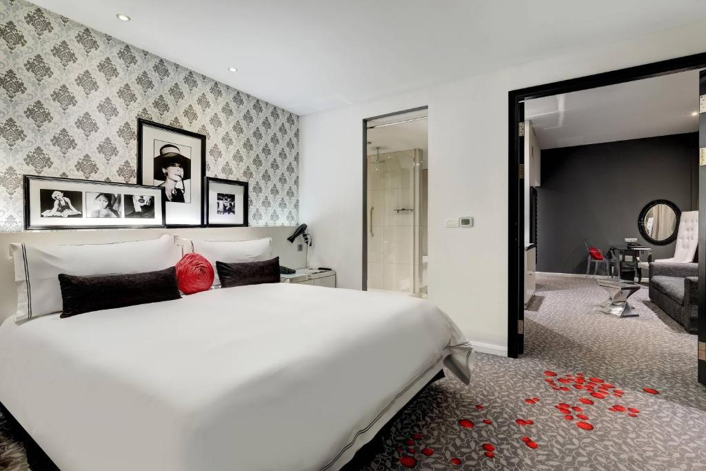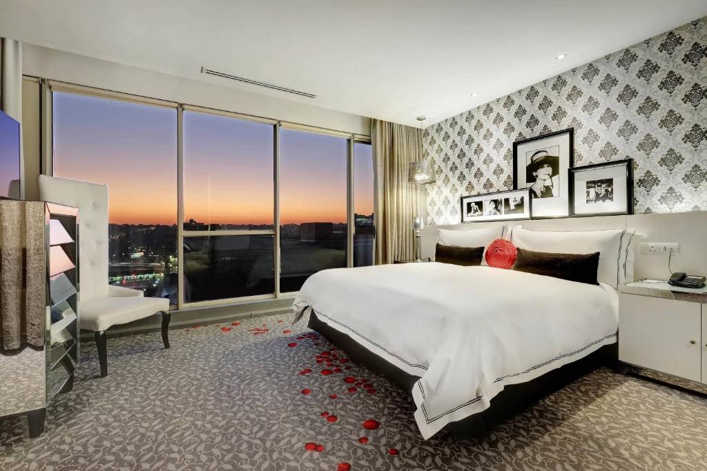 All rooms feature state-of-the-art technology and modern design. They feature air-conditioning, a luxurious bathroom, a satellite TV, a fully-stocked mini-bar and tea/coffee making facilities.